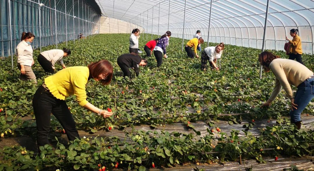 翠绿的叶子、鲜红欲滴的草莓、香甜的气息让大家心情格外舒畅。大家行走在草莓土垄之间,一边采摘,一边品尝,欢声与笑语不断,快乐与热情四溢。